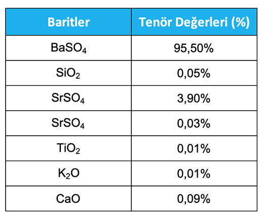 Barit ocağı limana 220 km. uzaklıktadır. Mevcut üretimdeki barit ocağının tüvenan tenör değerleri aşağıda verilmiştir.